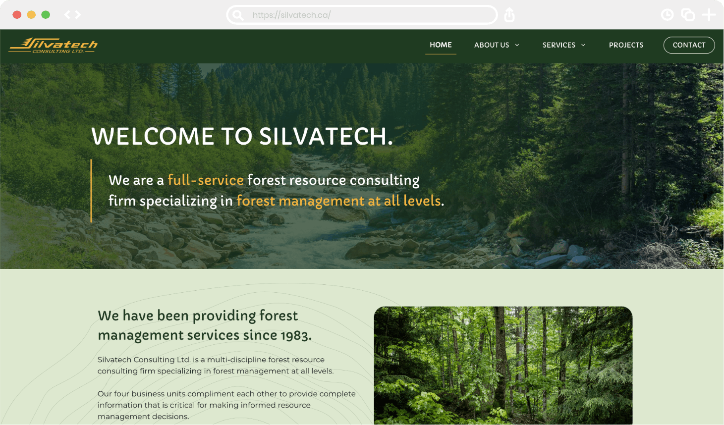 Moving away from their previous static, text prominent website, Silvatech requested a forest-like feel update, using no white as a background. Updating their branding colours, visual illustrations and imagery, we created this deeply rich website filled with tree-inspired imagery and graphics.