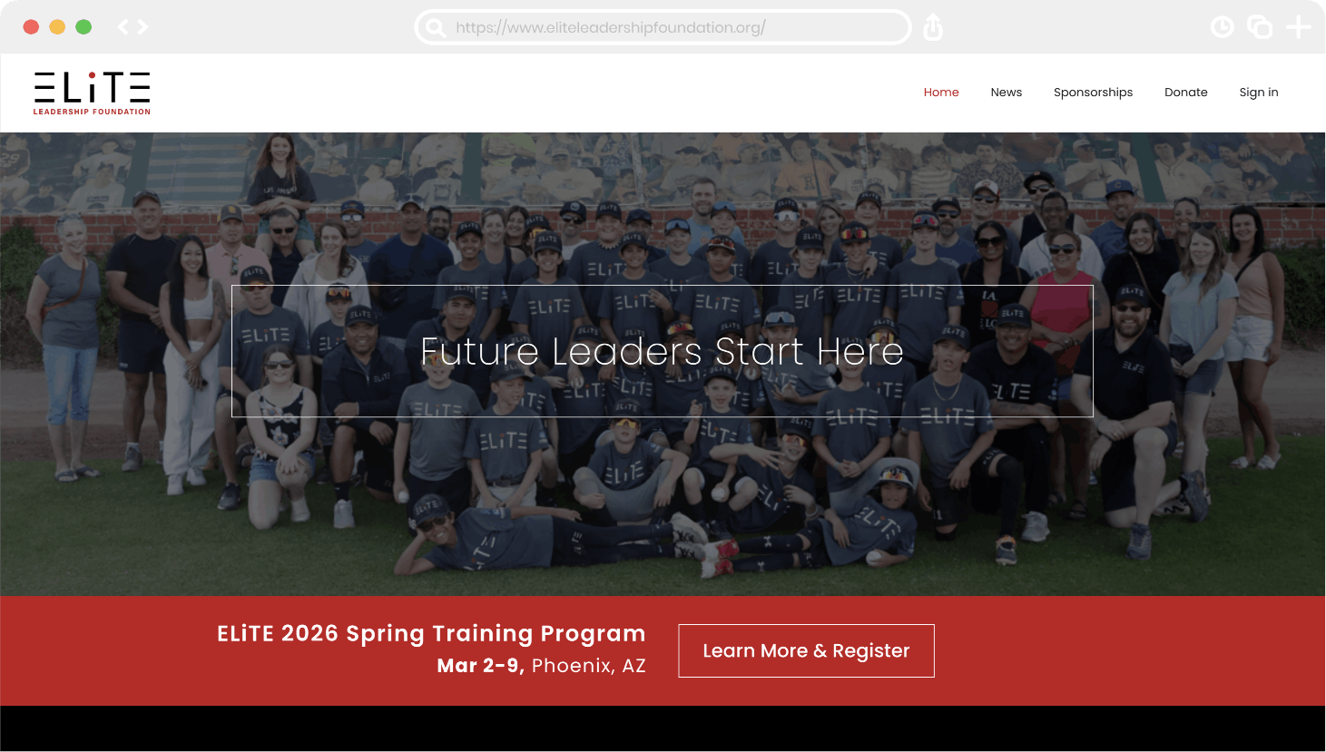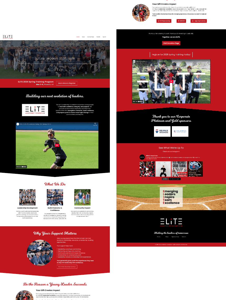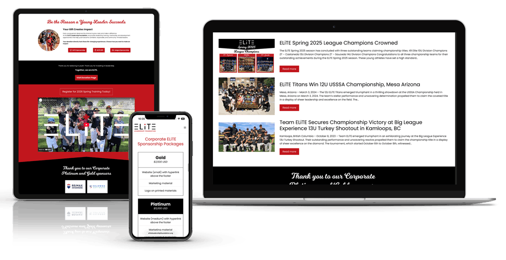 Using the branding from its parent website, ELiTE Leadership Foundation needed a place to share information about the foundation and allow donors provide gifts or sponsorship for athletes in need of support to reach their dreams.
