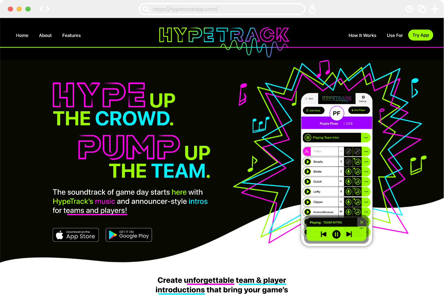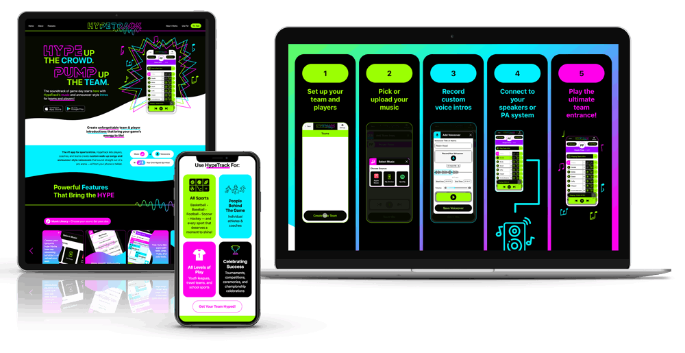 Our newest app is rolling out soon! HypeTrack allows team managers and coaches to set up energetic playlists for when their players enter the field, score a point, or win a game!