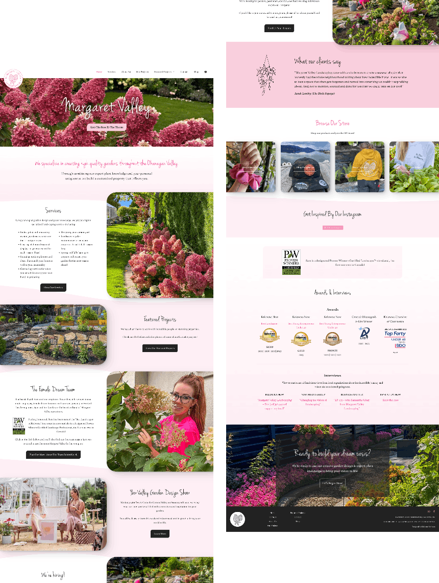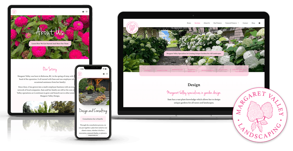 Located in picturesque Kelowna, B.C., woman-owned Margaret Valley Landscaping wanted a website to showcase their unique pink branding and beautiful landscaping projects.