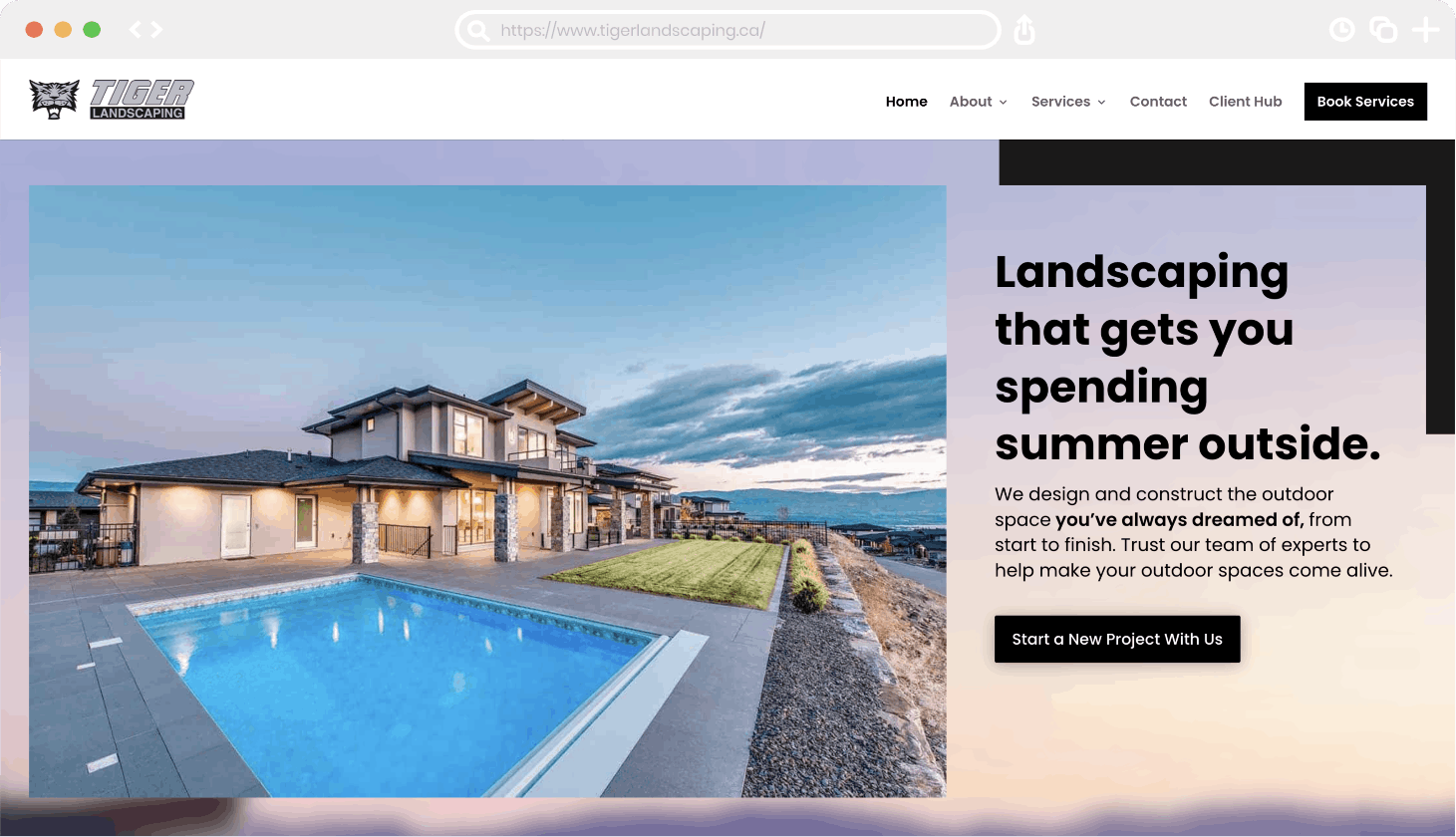 Tiger Landscaping requested a new website to showcase their high-end work, share their services available, and allow them to manage requests and jobs online through the Jobber app.